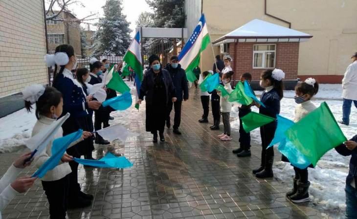 Фотографии, на которых узбекские школьники в морозную погоду стоят с флагами в одних свитерах, разлетелись по соцсетям. При этом сами чиновники были одеты по погоде — в зимней одежде.