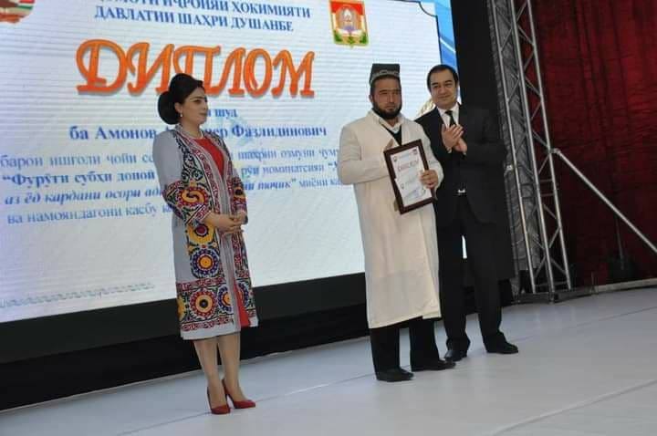 Ардашер Амонов, имам-хатиб мечети Джалолиддини Балхи района Шохмансур столицы занял второе место в районном и третье место в городском турах конкурса «Фуруги субхи донои китоб аст» (Книга — мудрости зари сиянье).