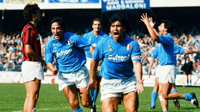 В Италии Марадона показывал лучший клубный футбол за всю свою карьеру. С ним команда впервые завоевала первое место в чемпионате Италии в 1987 году и повторила успех в 1990-м, а в 1989 году стала обладателем кубка УЕФА.