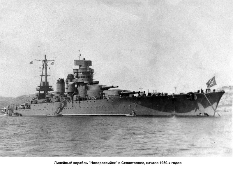 Уже в июле 1949 года «Новороссийск» принял участие в манёврах эскадры Черноморского флота в качестве флагмана. Служба линкора в составе ВМФ СССР продолжалась до того рокового дня 1955 года.