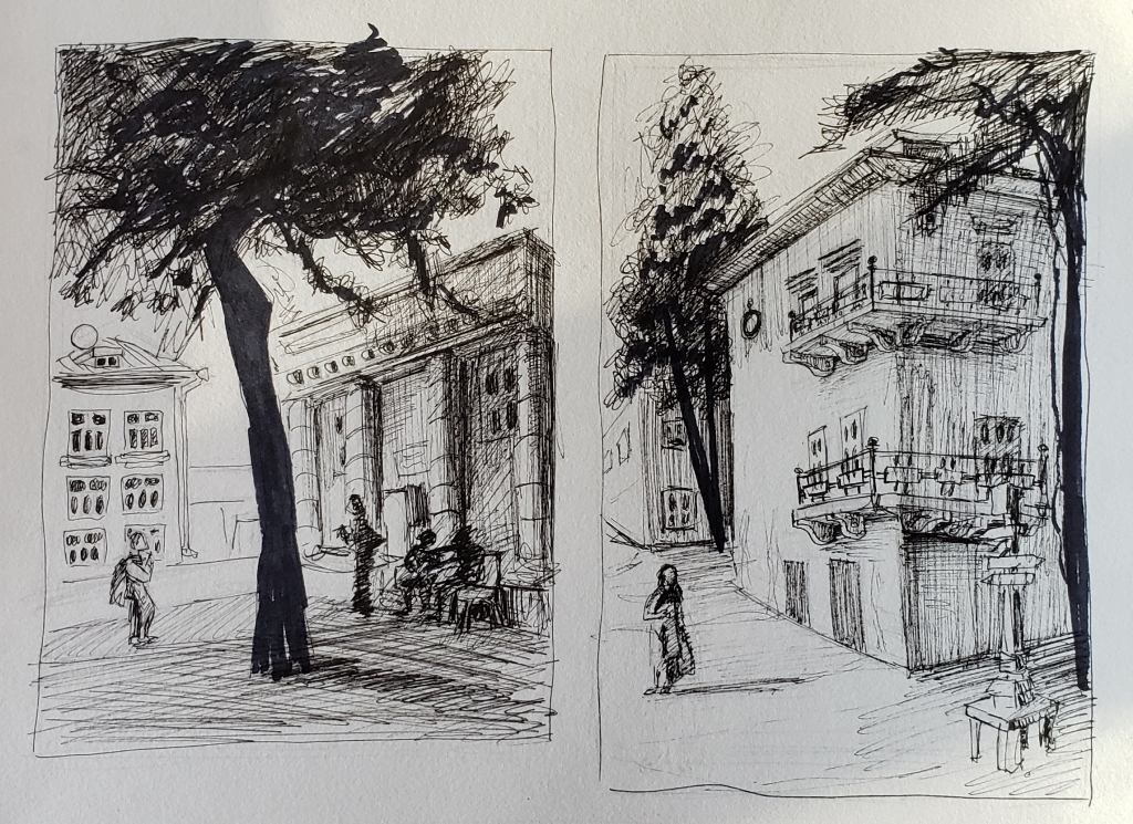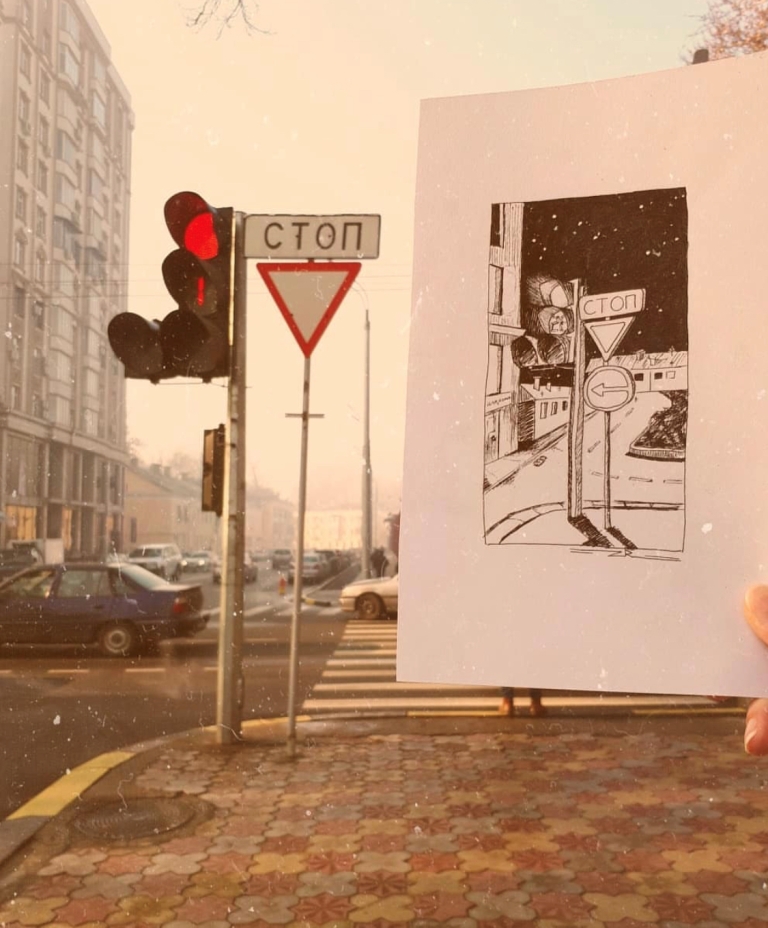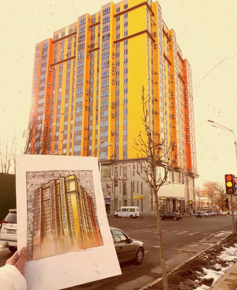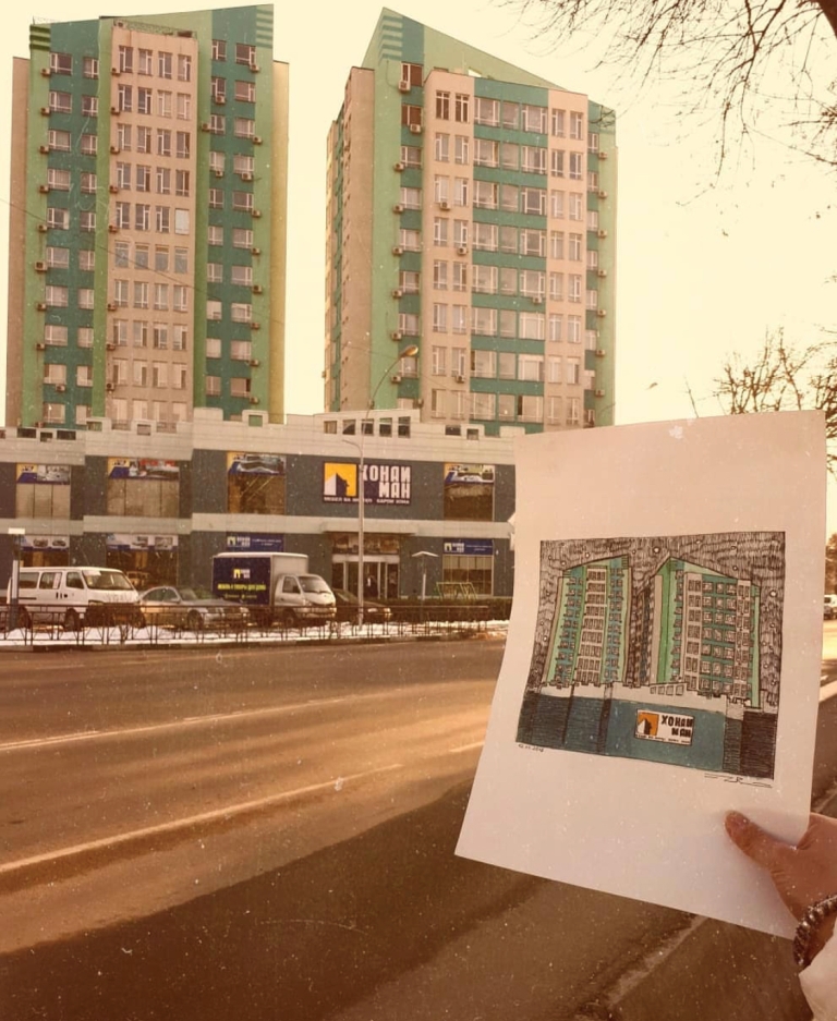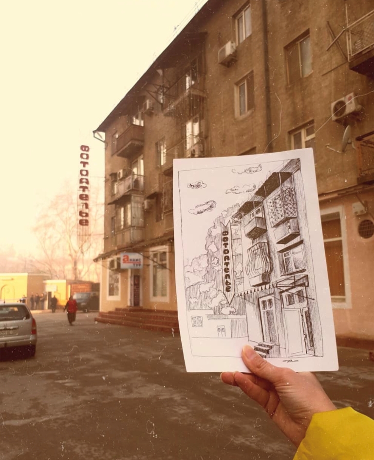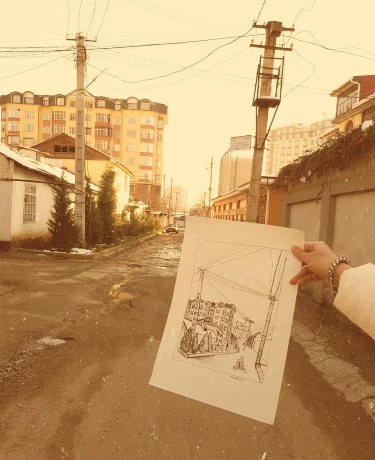 — На втором курсе нам дали задание сделать наброски городского пейзажа, базара, а также интерьера. Это занятие очень полезно для совершенствования навыков в рисовании. Я ходила по городу, фотографировала на телефон здания, улочки, людей. В итоге так увлеклась, что вся галерея была забита фотографиями. Как оказалось, у нас столько интересных мест, а мы этого часто не замечаем.