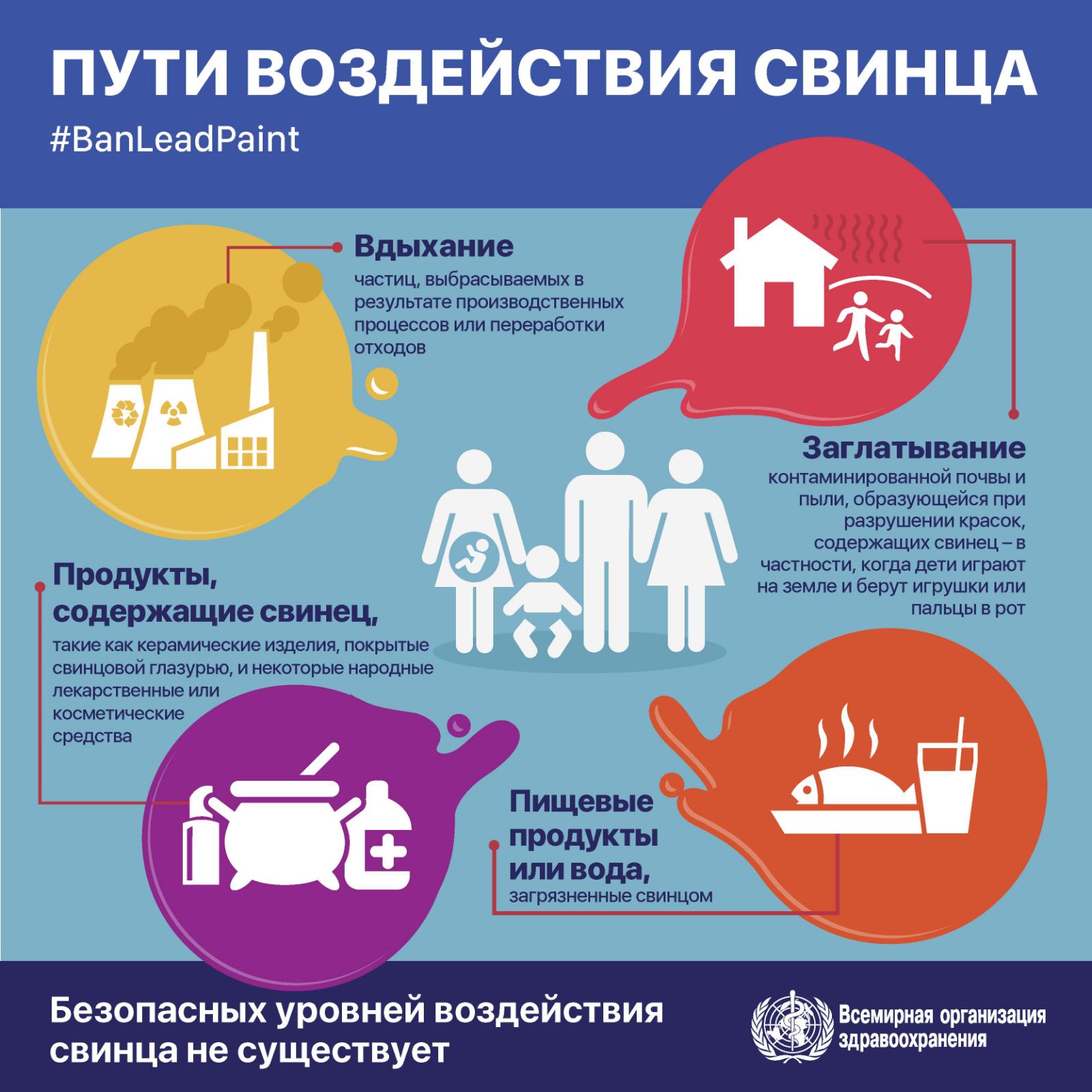 ВОЗ назвала свинец одним из 10 опаснейших химических веществ, вызывающих основную обеспокоенность в области общественного здравоохранения и требующих действий со стороны государств, для того чтобы защитить здоровье населения.
