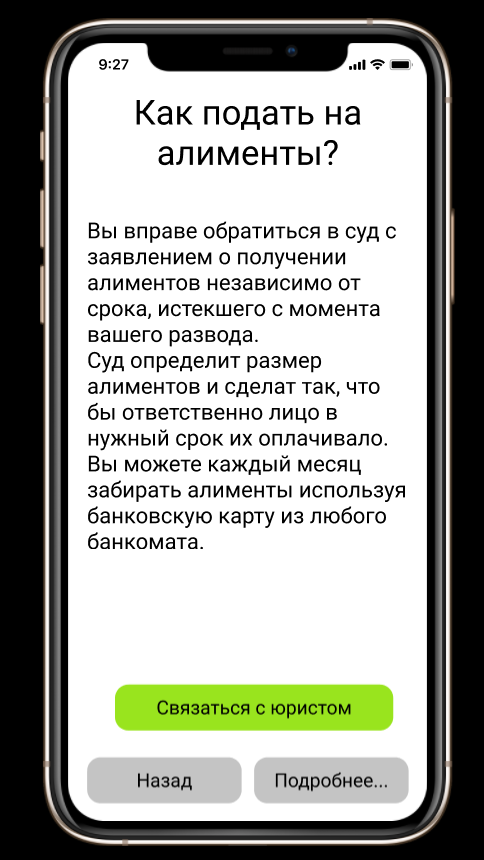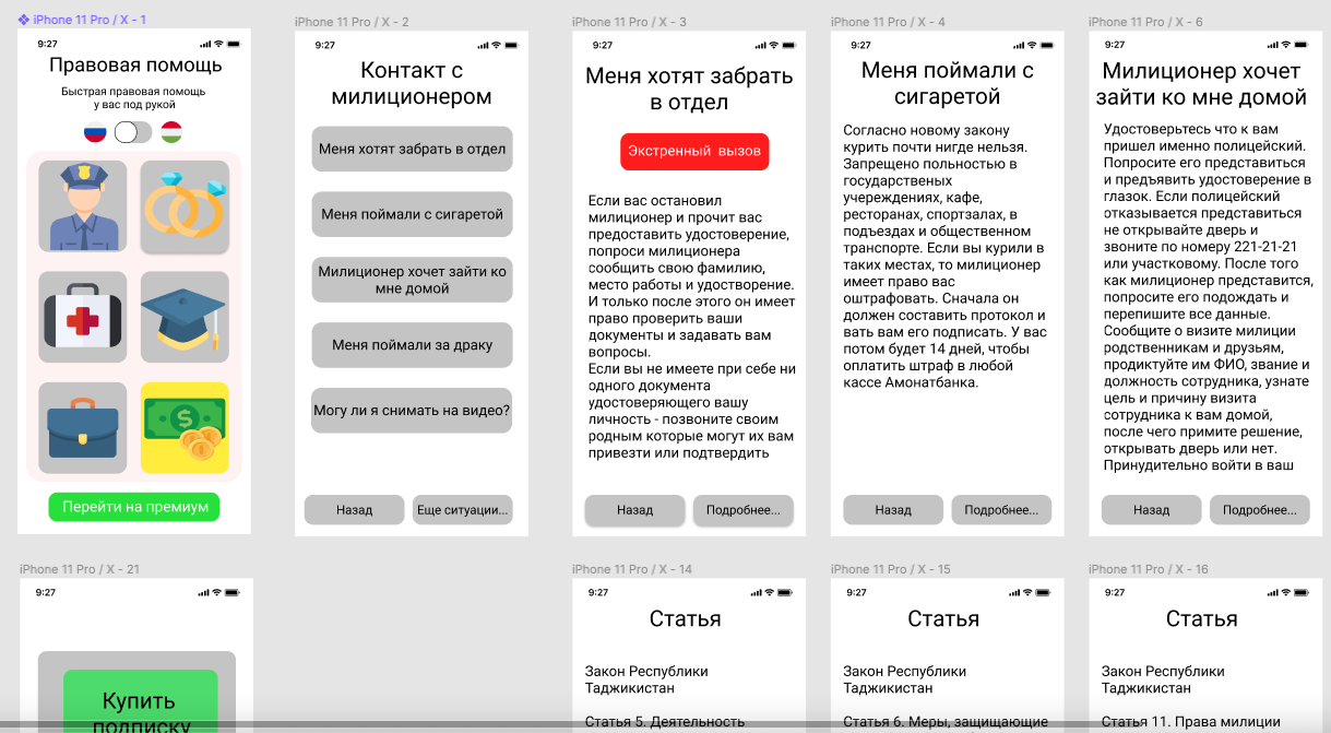 «Приложение будет бесплатным, но за дополнительную плату можно будет получить правовую помощь для малых и средних предприятий. Так же в приложении будет каталог с услугами профессиональных юристов с их рейтингами. Приложение находится только на стадии разработки. Текст и интерфейс готовы пока только для ознакомления и презентации идеи», — сообщили авторы.