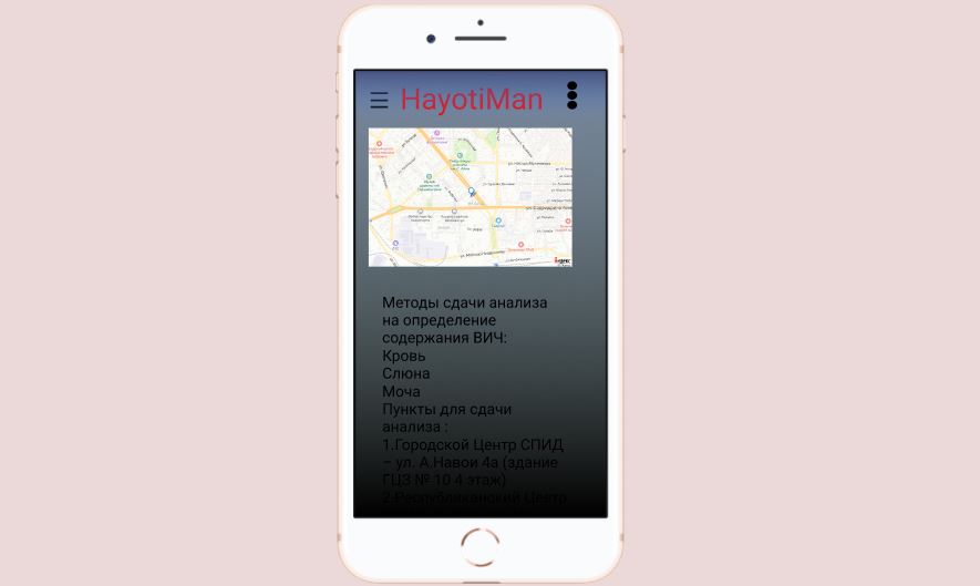 «Мы выбрали программу, а не сайт, чтобы молодые люди в любой момент могли скачать и поделиться с друзьями. В приложении будут доступны последние отчеты и информация о ВИЧ, СПИД, тесты, а также адреса врачей и пунктов для сдачи анализа на ВИЧ/СПИД. Регистрация в приложение анонимная», — сообщили авторы идеи.