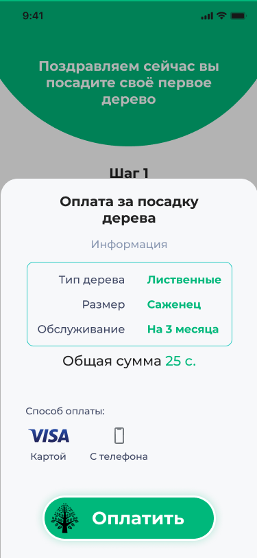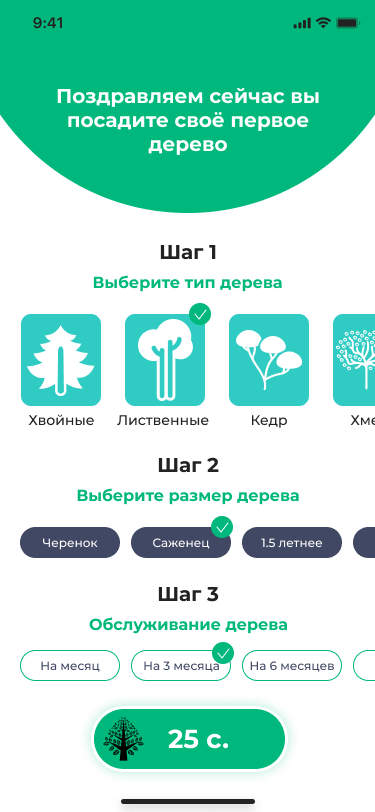 Для этого надо зарегистрироваться в приложении, выбрать тип дерева, ввести примерный адрес посадки, оплатить и всё. Также можно подключить возможность обслуживания, если у самих нет времени ухаживать за деревом.