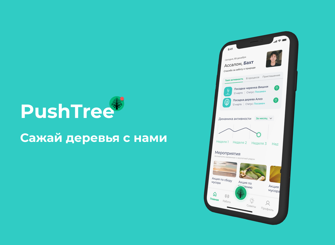 «При помощи приложения можно за несколько шагов посадить дерево. После заказа в Push tree, дерево сажается в течении 3-4 дней, и человеку отправляется push-уведомление с геолокацией и фотографиями – ориентирами о том, где посажено ваше дерево», — говорят авторы.