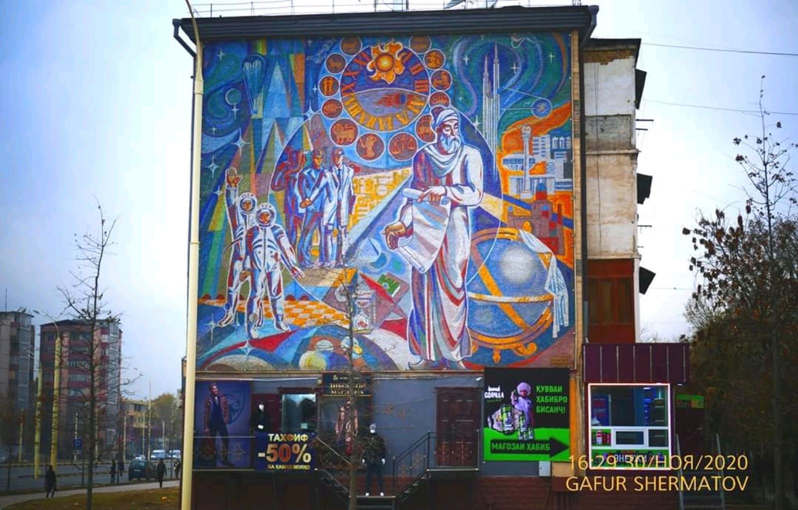 Известный историк Таджикистана Гафур Шерматов, который известен своим неравнодушием к исторической памяти своего любимого города, опубликовал на своей страничке в Facebook просьбу. Пост был адресован сотовой компании Tcell, которая разместила свой рекламный баннер на боковой части жилого дома, украшенного советской мозаикой.