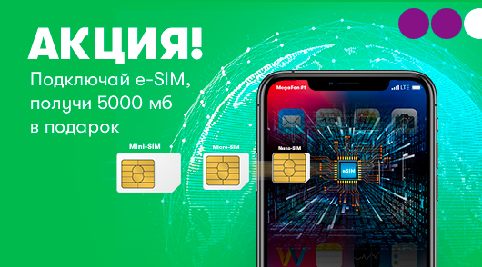 Первый оператор новых цифровых возможностей предлагает активным пользователям интернета увеличить подключенные пакеты трафика еще на 5 000 Мб. Для этого достаточно перейти с обычной SIM-карты на электронную eSIM. Акция, позволяющая «автоматически» получить такой подарок от МегаФона, продлится до 31 декабря 2020 года включительно.