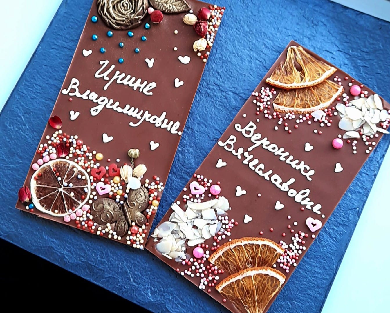 Ингридиенты девушка заказывает на официальных сайтах мировых брендов Valrhona, Cacao Barry, Barry Callebaut, Chocolate Word, Martellato, Pavoni. На приготовление одной плитки уходят сутки, а для корпусных конфет – трое суток. Залить в форму шоколад – это пол дела. Много времени уходит на украшение и декорирование изделия.