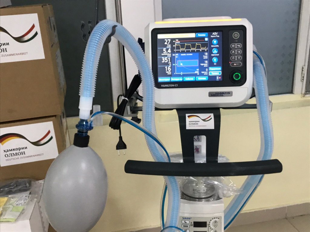 11 аппаратов искусственной вентиляции легких производства Швейцарии, стоимостью 287 500,00 Евро были закуплены в рамках финансовой помощи Правительства Германии в размере 1 млн Евро, выделенной через Германский Банк Развития – KfW — в Марте этого года в рамках Таджикско-Германского финансового сотрудничества.