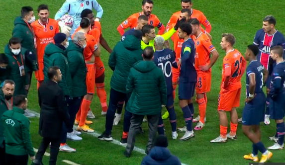 После этого в перепалку с судьями вступили участники обеих команд. На 23-й минуте первого тайма игроки турецкого клуба ушли с поля в раздевалку, отказываясь продолжать матч. Игроки ПСЖ последовали их примеру.