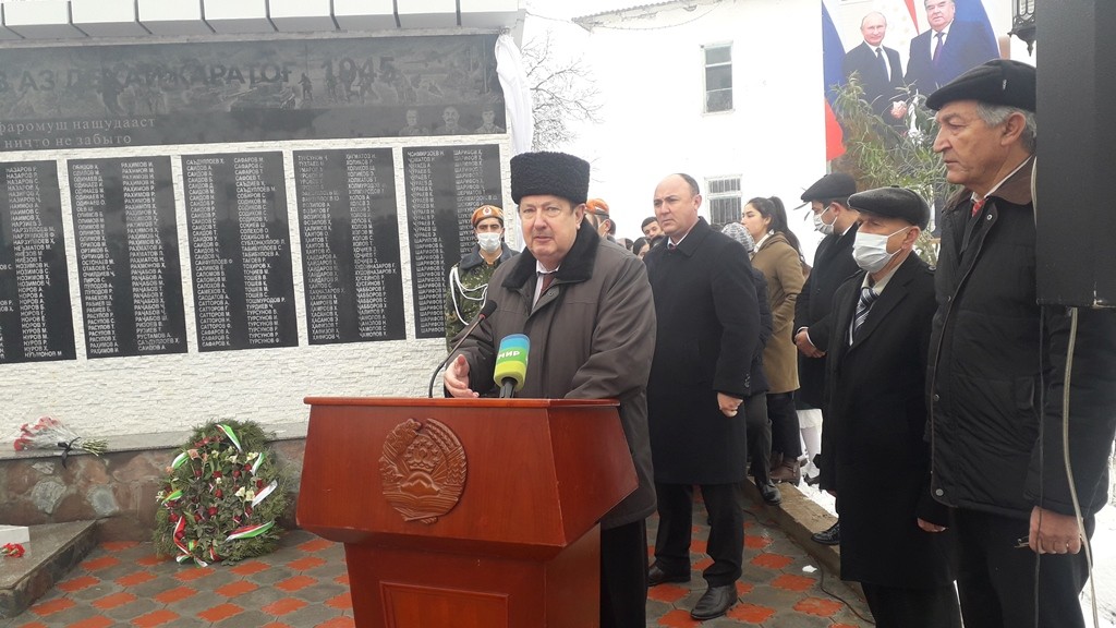 В поселке Каратаг города Турсунзаде 9 декабря с участием посла России в Таджикистане Игоря Лякина-Фролова и мэра Турсунзаде Парвиза Акрамзода состоялось торжественное открытие памятной стеллы, посвященной памяти героев Великой Отечественной войны.