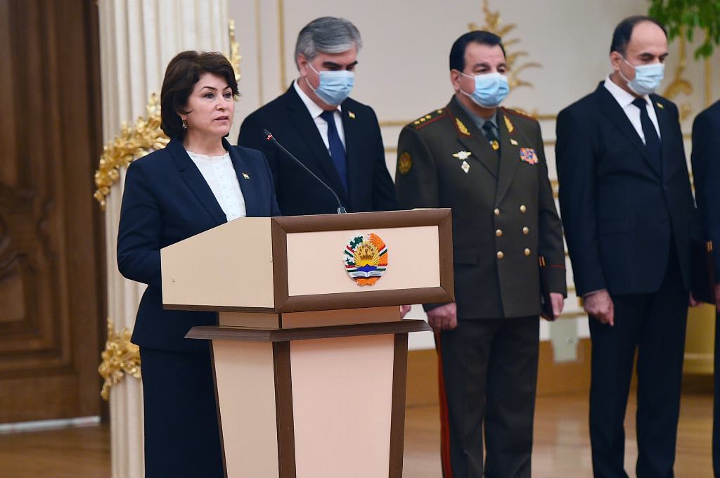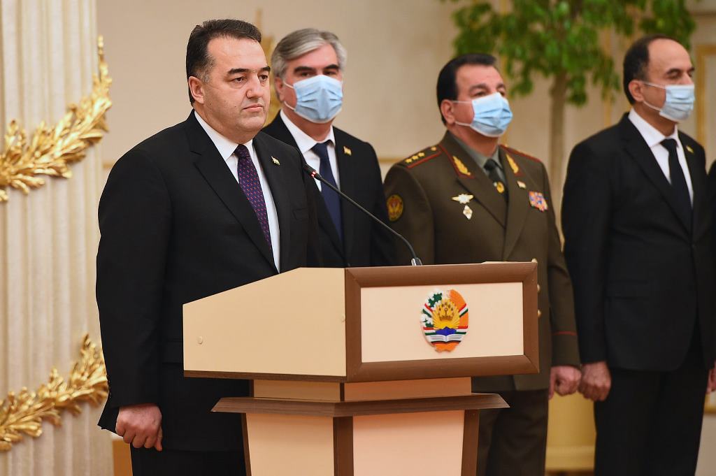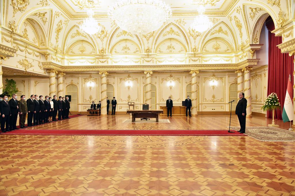 «Члены правительства, осознавая свою ответственность, поклялись президенту страны, что ставят интересы нации и государства превыше всего, приложат все свои силы и знания для социально-экономического развития страны, строго соблюдать Конституцию, законы и распоряжения президента. Обещали приложить усилия для развития и повышения авторитета Таджикистана на мировой арене», — отмечается на сайте президента страны.