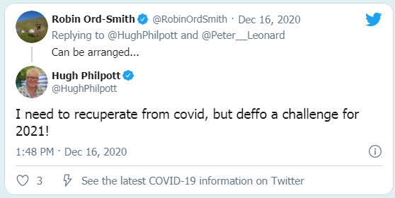 «Дорогие друзья, на данный момент я не очень активен в социальных сетях. Я восстанавливаюсь после вируса, распространающегося в «физическом мире». Об этом позже. Но от других «маленьких птичек» я слышу, что многим из вас нравится моя песня. Я искренне счастлив, это помогает мне выздороветь», – было написано в следующем твите Хью Филпотта.