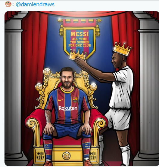 В твиттере каталонского клуба отметили историческое достижение своего нападающего рисунком, на котором бразилец коронует аргентинца.