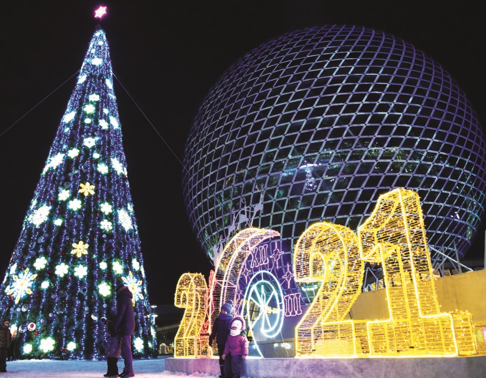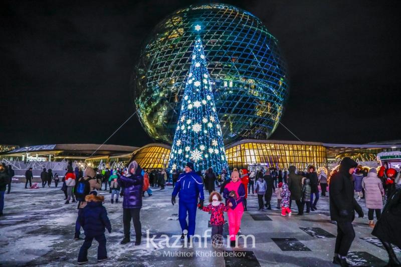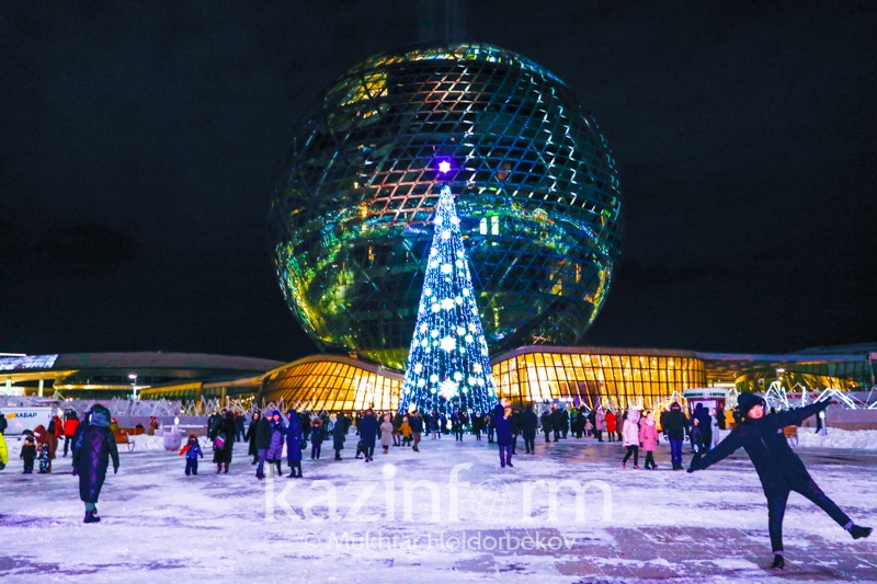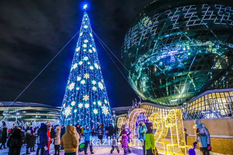 В Казахстане главная ёлка страны зажглась в Нур-Султане на территории ЭКСПО, перед павильоном «Нұр Әлем».
