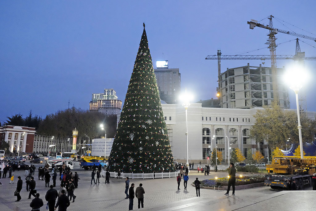 В столице Туркменистана — городе Ашхабаде торжественная церемония зажжения главной ёлки страны состоялась 16 декабря при участии Аяз Баба (Деда Мороза), его внучки Гарпамык.