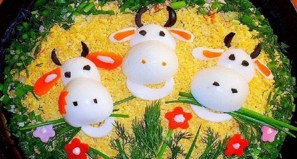 Как известно Бык питается растительной пищей, поэтому на праздничном столе должно быть много зелени, а также фрукты, овощи и злаковые.