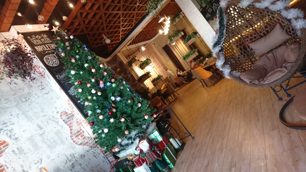 Здесь ёлочка наряжена с середины декабря и ждёт посетителей. Как вы уже догадались по названию, заведение специализируется на приготовлении пиццы, которая, к слову, по мнению горожан является одной из лучших в городе. Также готовят тут и другие блюда итальянской кухни.