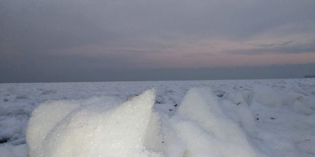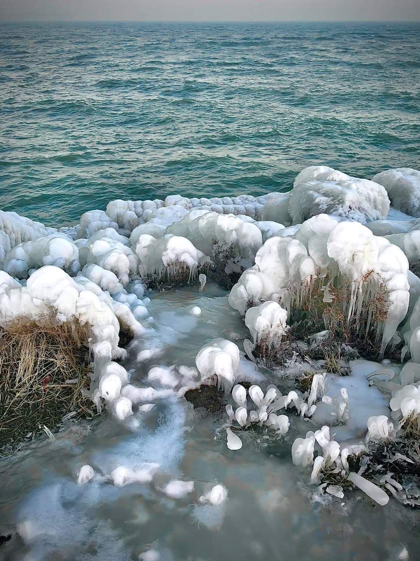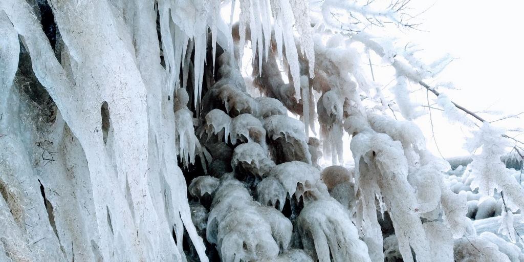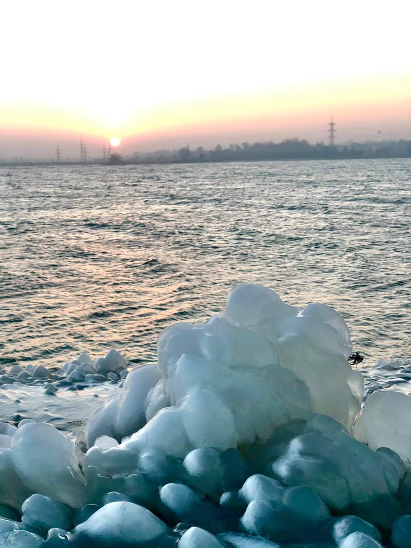 Водохранилище замерзает не часто. Но в этом году температура воды снизилась до минусовой отметки, в результате чего береговая линия покрылась льдом. Взору открывается сказочная картинка. Замёрзшая вода сформировала причудливую поверхность, а берега с ее растительностью замерли под толстой коркой льда.