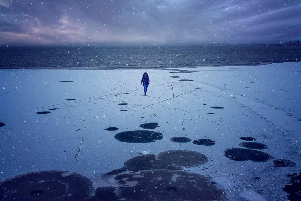 Несмотря на то, что замерзшее море является отличным фоном для фотосессий, вставать на лед все же небезопасно. Вода замерзла только недалеко от берега, вдалеке лед передвигается.