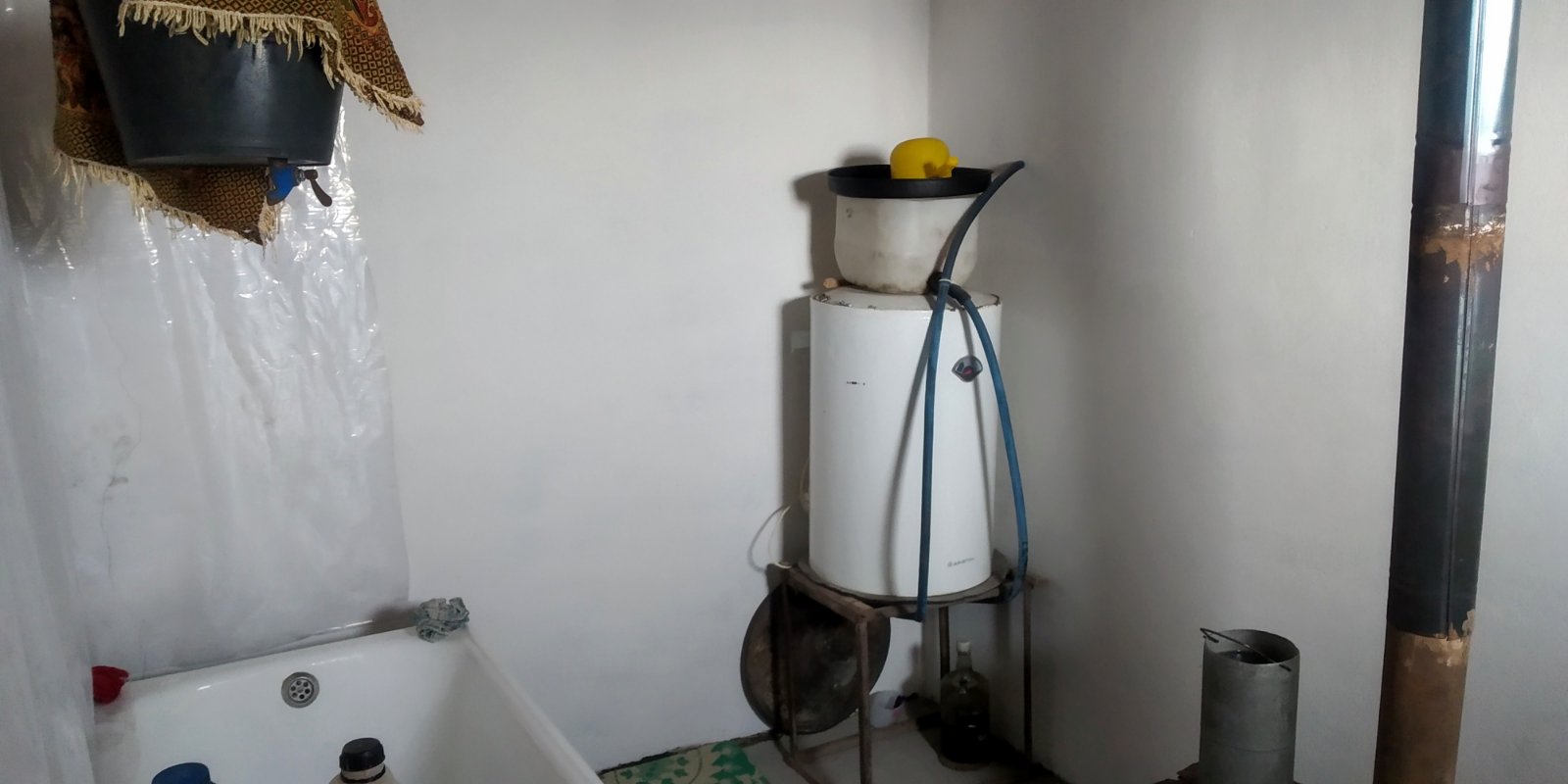 Тохир приглашает меня в свое жилище. Жена с сыном-подростком приветливо встречают редких гостей. Главный атрибут в доме – печка-буржуйка. Благодаря ей в комнате достаточно тепло. Крайняя комната – ванная. Там тоже стоит печка. Над ванной свисает подвешенное к потолку пластмассовое ведерко, которое служит в качестве душевого смесителя.