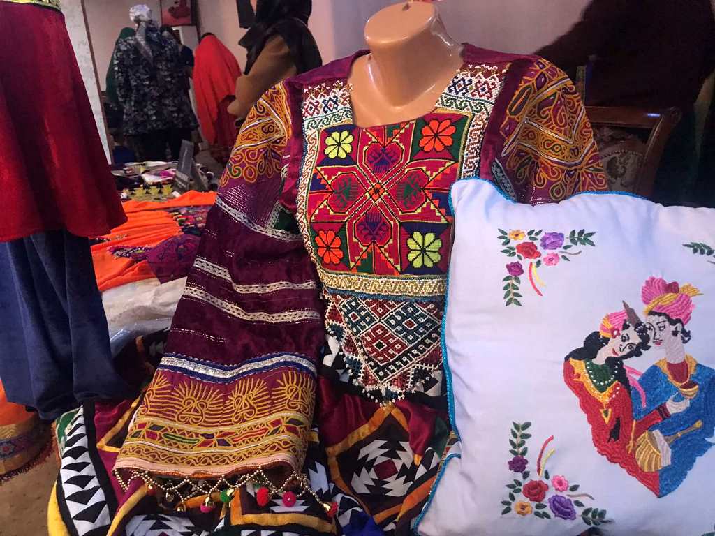 На выставке были представлены глиняные изделия, деревянная посуда, покрывала, сумочки, чехлы для мобильных телефонов, выполненные в стиле лоскутной техники вышивания «кирокдузи», «чакан» и «зардузи», а также национальная женская одежда для детей и взрослых с традиционными орнаментами.