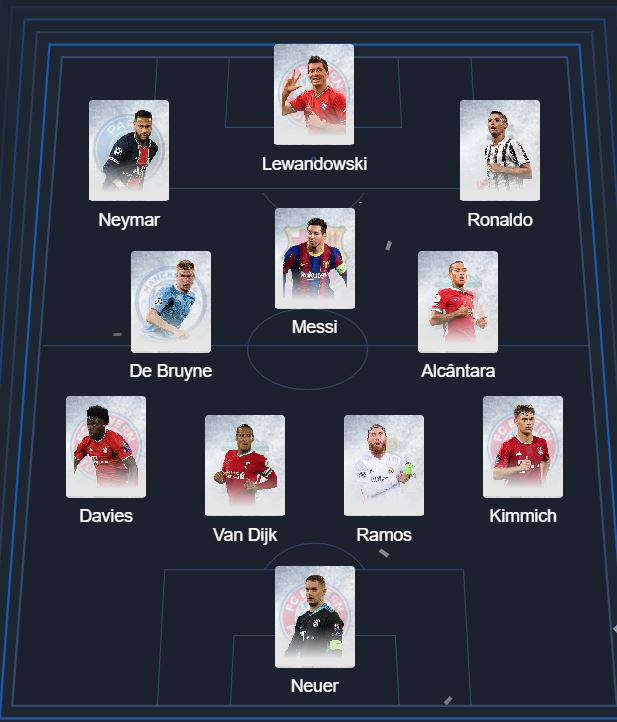 Союз европейских футбольных ассоциаций (UEFA) набрал символическую сборную из лучших игроков 2020 года. В команду попал Роналду, а также Неймар, Месси и сразу пять футболистов «Баварии».