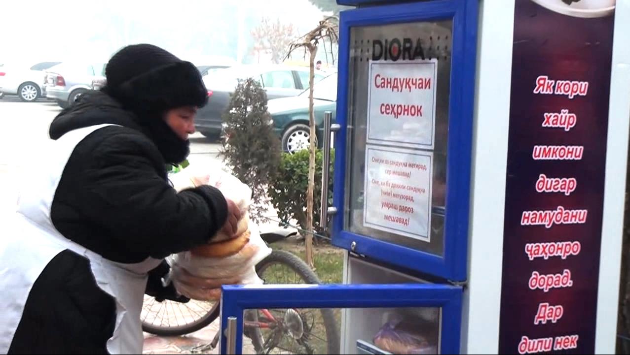 В Худжанде появился «уголок добра», куда любой желающий может положить что-то из продуктов питания, а любой нуждающийся — брать бесплатно.