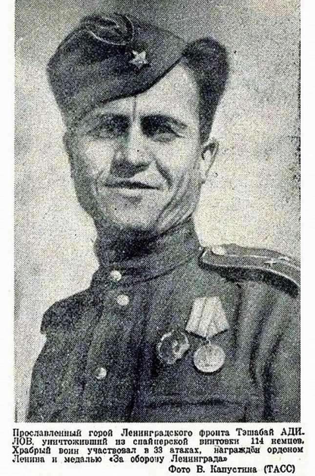 Громкая слава шла на Ленинградском фронте о снайперах Тэшабое Адилове и Шукурулло Исаеве.