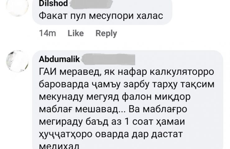 Опрос в социальной сети Facebook подтвердил, что такой метод выдачи диагностических документов и технических осмотров является характерным не только для пункта технического осмотра, расположенном на улице Дж. Расулова, 75, Душанбе. Подобные случаи имеют место быть и в других пунктах техосмотров автомобилей в ряде городов и районах страны.