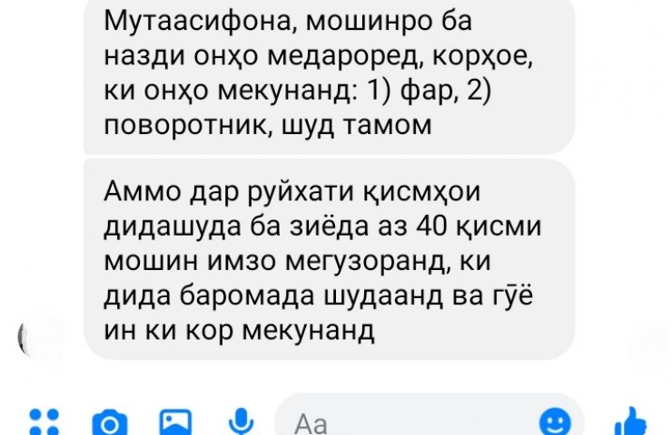 Технический осмотр авто по-таджикски