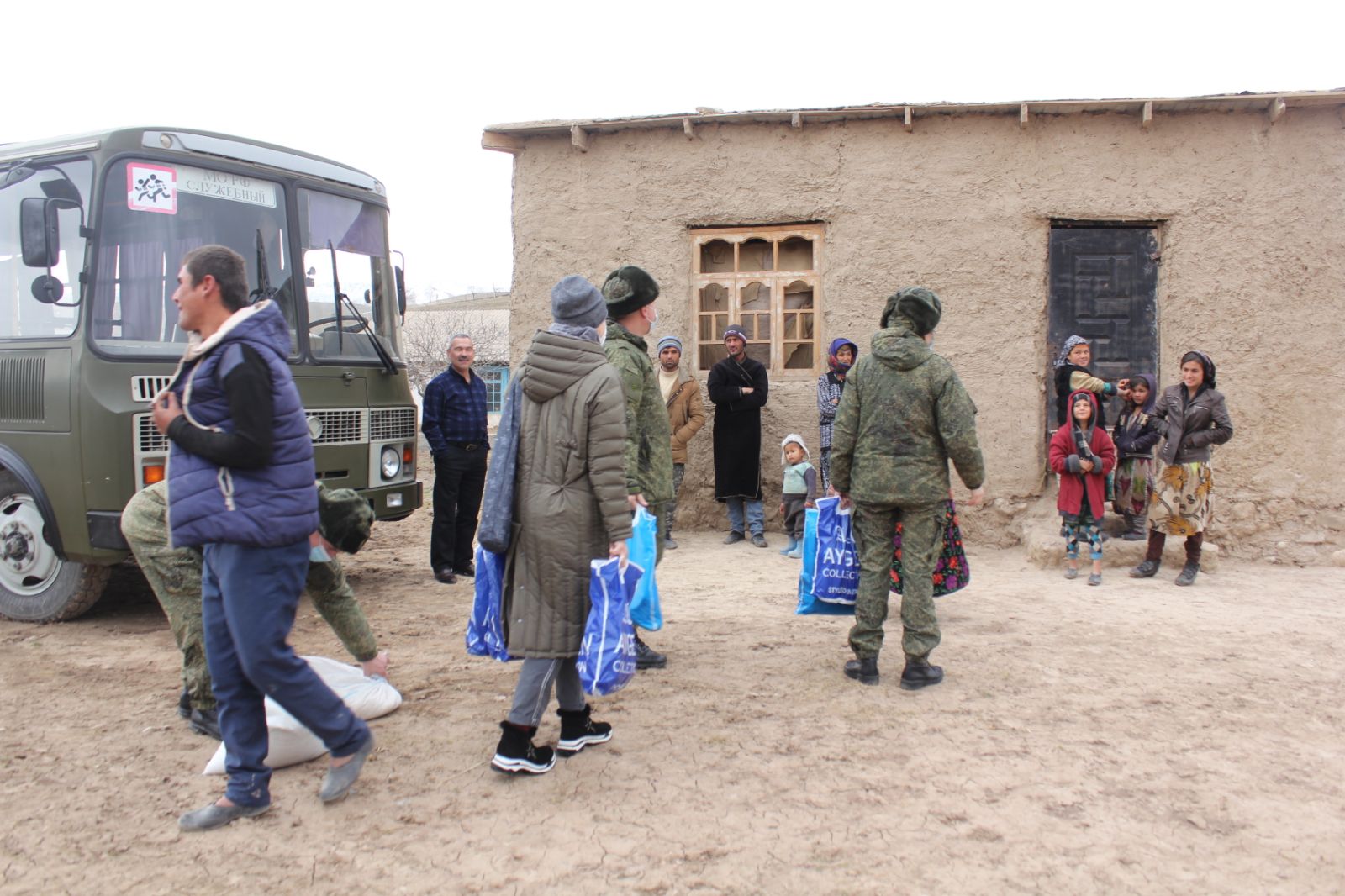 Российские военнослужащие 201-й военной базы доставили трем многодетным семьям, проживающим в отдаленном районе Таджикистана, теплые вещи и продукты питания. сообщает пресс-центр 201-й РВБ.