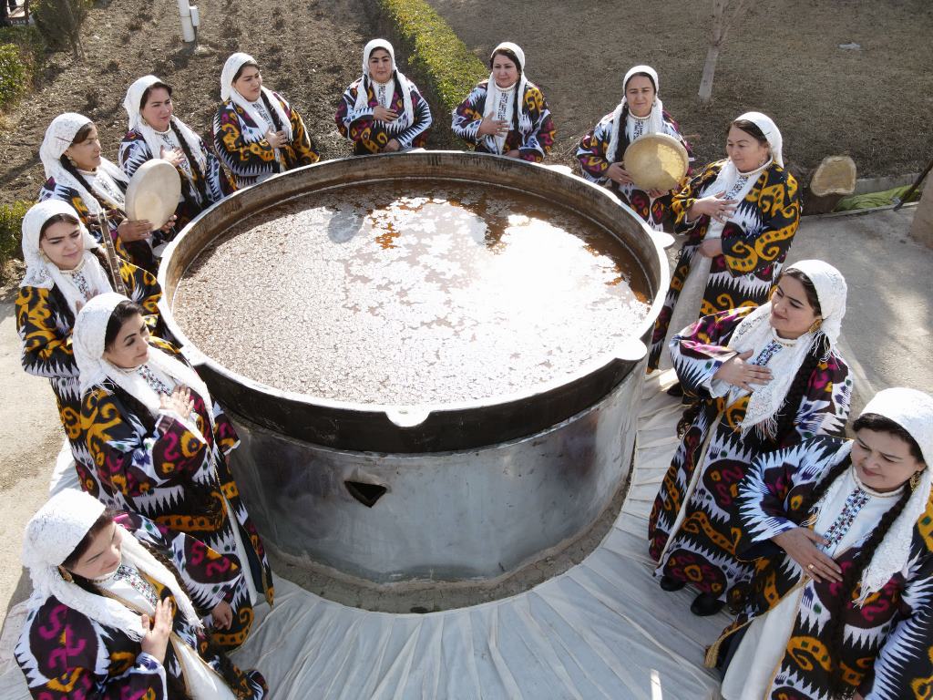 Опытные повара из различных городов и районов области в громадных котлах приготовили тонну плова и тонну халвы.