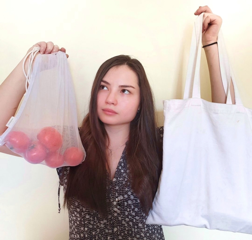 Помимо онлайн-активностей, она и другие волонтеры экологической организации "Маленькая Земля" проводят специальные акции. Одна из них — "Пластиковый пакет — спасибо, нет!".