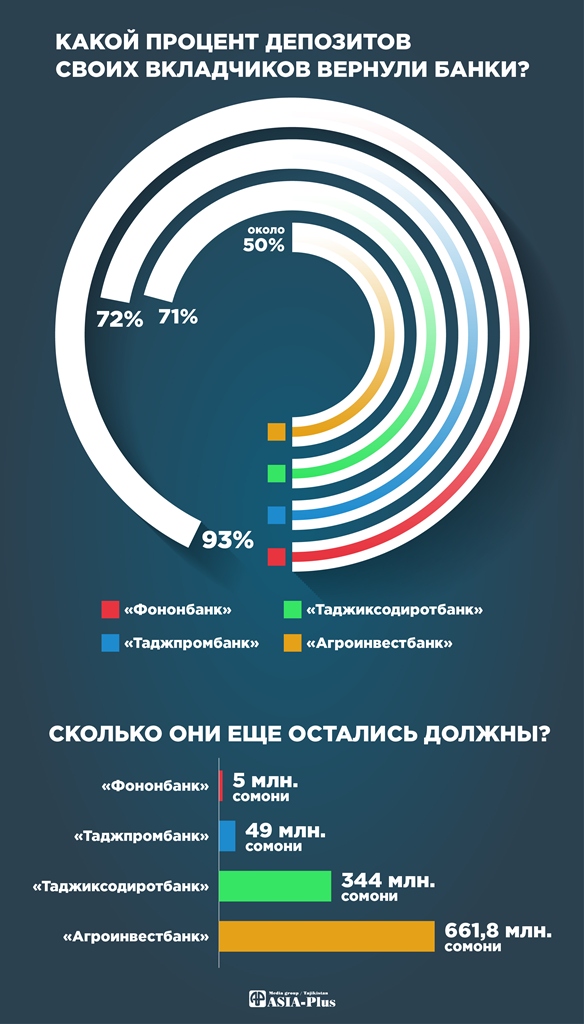Проблемы в банковском секторе Таджикистана стали очевидными в начале 2016 года. Два крупных банка — «Агроинвестбанк» и «Таджиксодиротбанк», которые занимали тогда более половины банковского рынка страны, правительство решило спасать путем рекапитализации, два других – «Таджпромбанк» и «Фононбанк» — лишились лицензии Нацбанка.