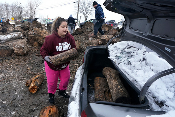 Жительница Далласа, штат Техас, загружает дрова в машину, 17 февраля. В ее доме электричество отключено с воскресенья
