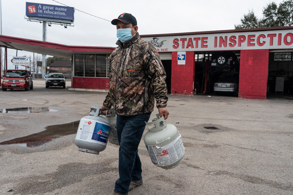 Житель Хьюстона идет за пропаном на заправочную станцию, 18 февраля