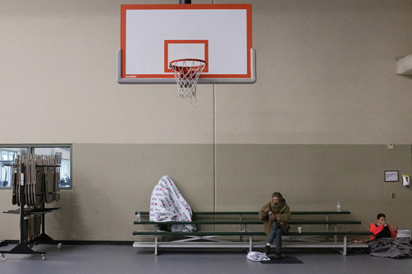 Жители Галвестона укрываются в убежище, 18 февраля