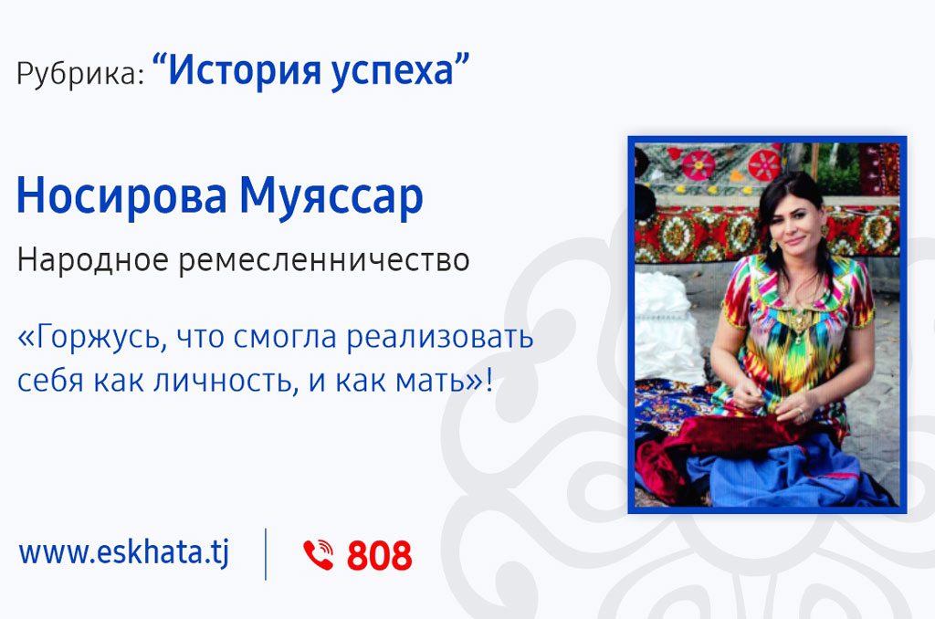 Муяссар Носирова – ремесленник, который занимается любимым делом. И что важно ее любимое дело приносит хороший доход.