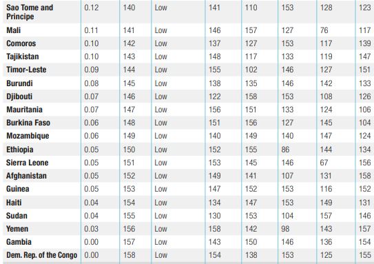 Наша республика набрала 0,10 баллов и расположилась между Коморскими островами и Восточным Тимором.