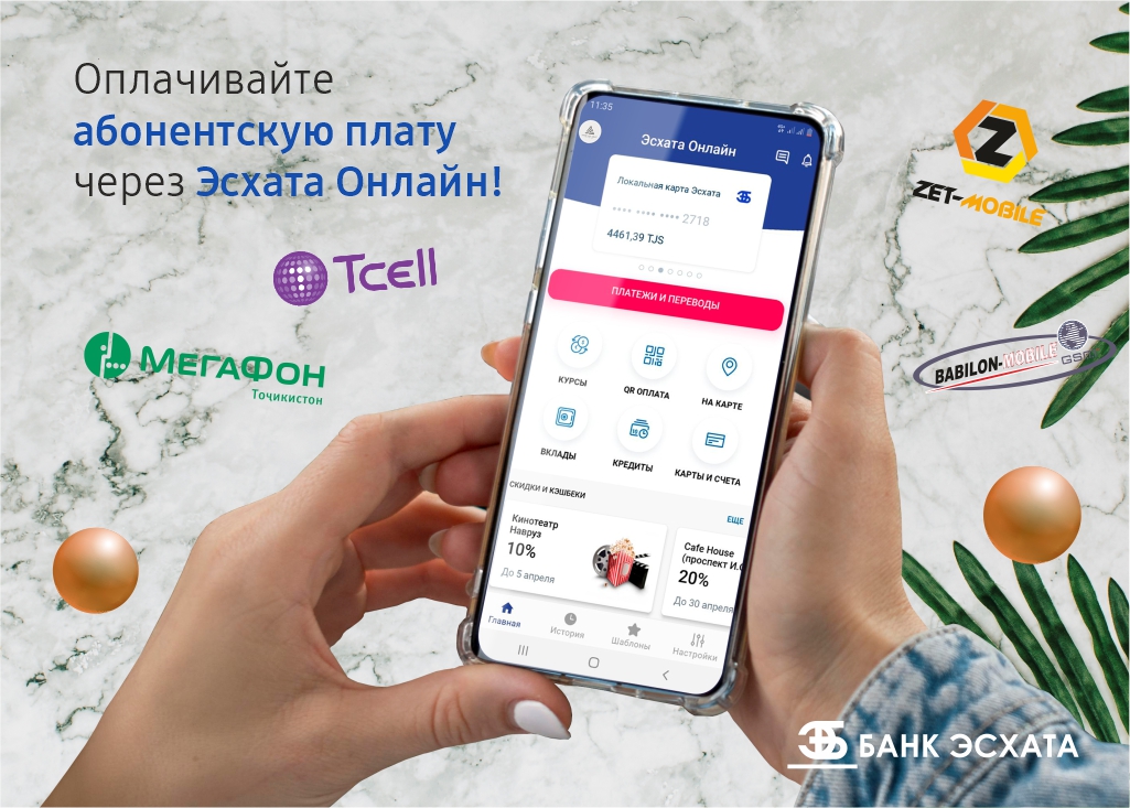 Пришло время внести абонентскую плату за мобильную связь? Оплачивайте за пару кликов в мобильном банке “Эсхата онлайн” без очередей, в удобное время и в удобном месте!