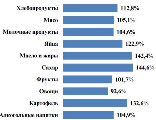 Наиболее значительно возросли цены на: помидоры – на 18,6%, картофель – на 14,7%, капусту – на 11,9%, морковь – на 11,8%, лимоны – на 5,5%, яйца – на 3,0%.