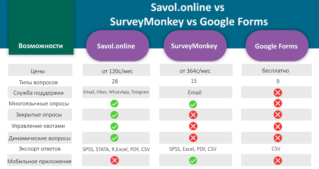 Есть бесплатные системы, как формы Google и Яндекс, но, соответственно, у них минимальный функционал, который является недостаточным не только для продвинутых, но и для немного требовательных пользователей. Система Savol.online предлагает несколько преимуществ для отечественных пользователей.