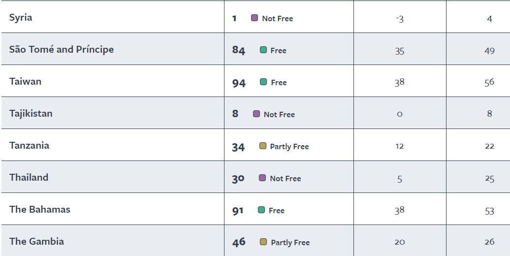 Для того, чтобы страну признали хотя бы «частично свободной», ей нужно набрать не менее 34 баллов из 100 возможных.