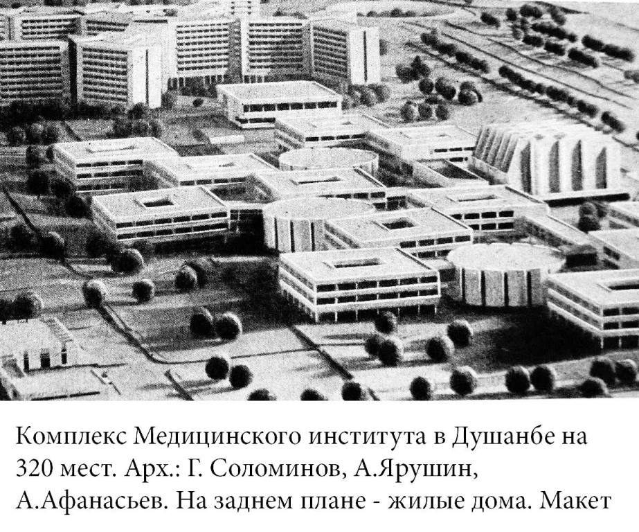 Дом политического просвещения, «юрта» — здание киноконцертного зала им. Борбада, душанбинский цирк, гостиница «Таджикистан», служебные здания МВД и КНБ, курорт Ходжа Оби Гарм — санаторий на 500 мест – это лишь малая часть удачных модернистских проектов, реализованных во времена СССР.