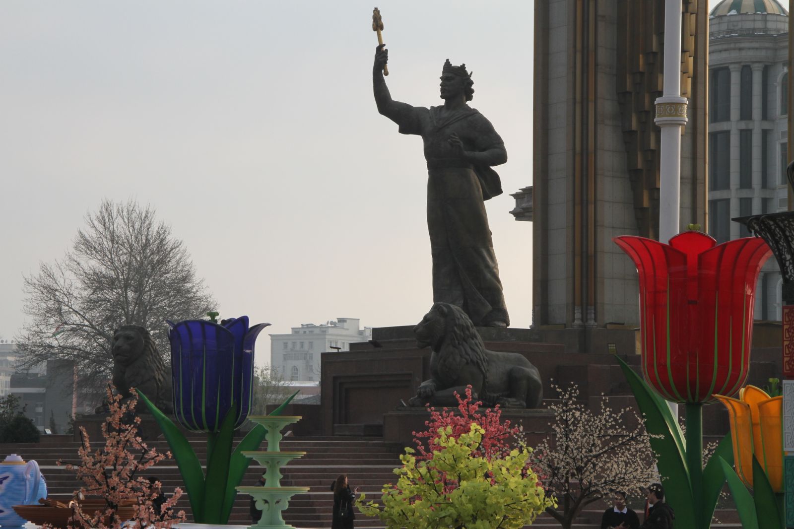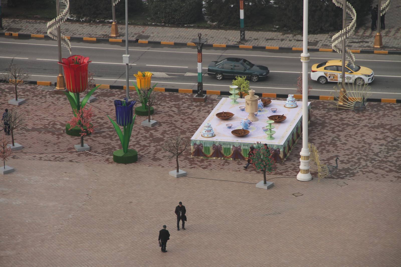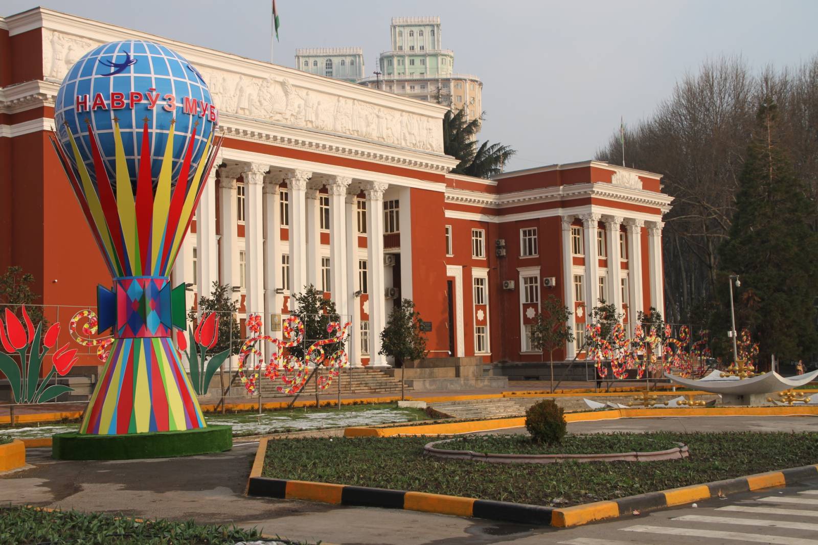 В Душанбе завершено украшение главной площади страны к празднику весеннего равноденствия – Наврузу. На площади «Дусти» установлен 30-метровый символ Навруза — суманак (пророщенная пшеница, из которой готовят праздничное блюдо) и другие атрибуты Навруза.