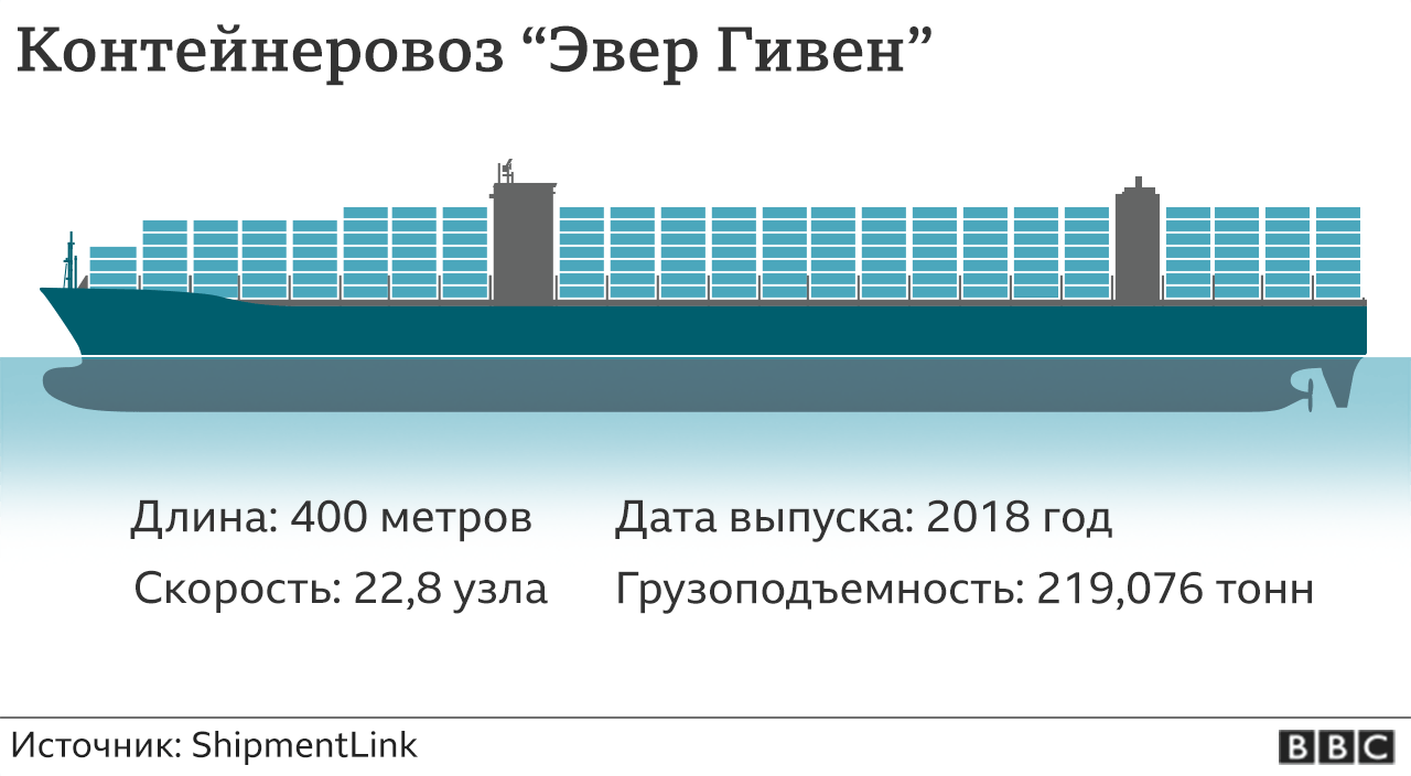 "Эвер Гивен" перегородил Суэцкий канал во вторник, создав огромную пробку из других судов. По каналу проходит 12% мировых грузоперевозок, и чем дольше 400-метровый контейнеровоз там стоит, тем больше страдает мировая торговля.