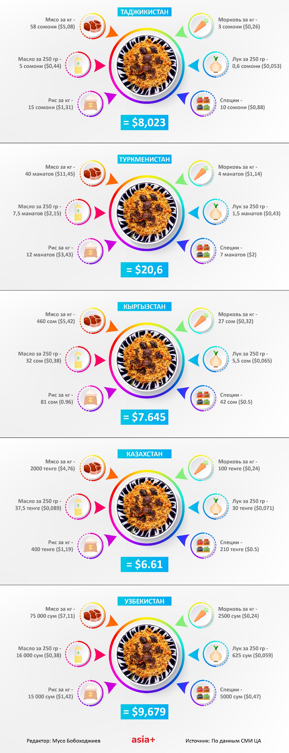 Сравнив цены в столицах Центральной Азии, мы решили проверить, насколько они разнятся на примере самого популярного блюда – плова.