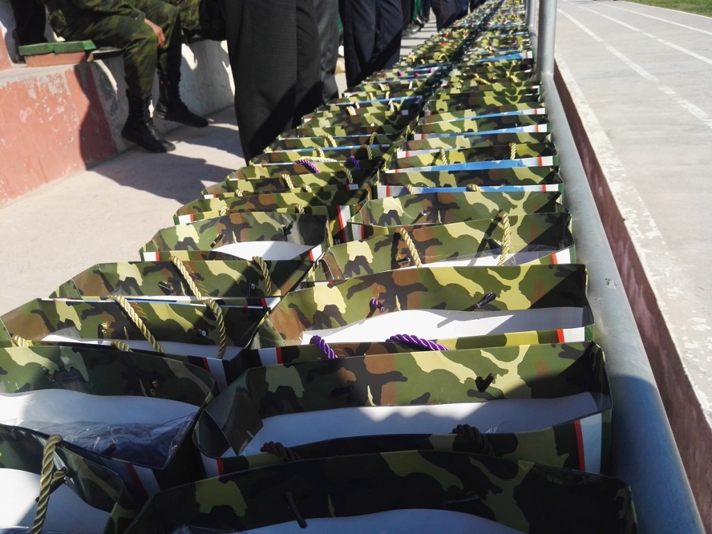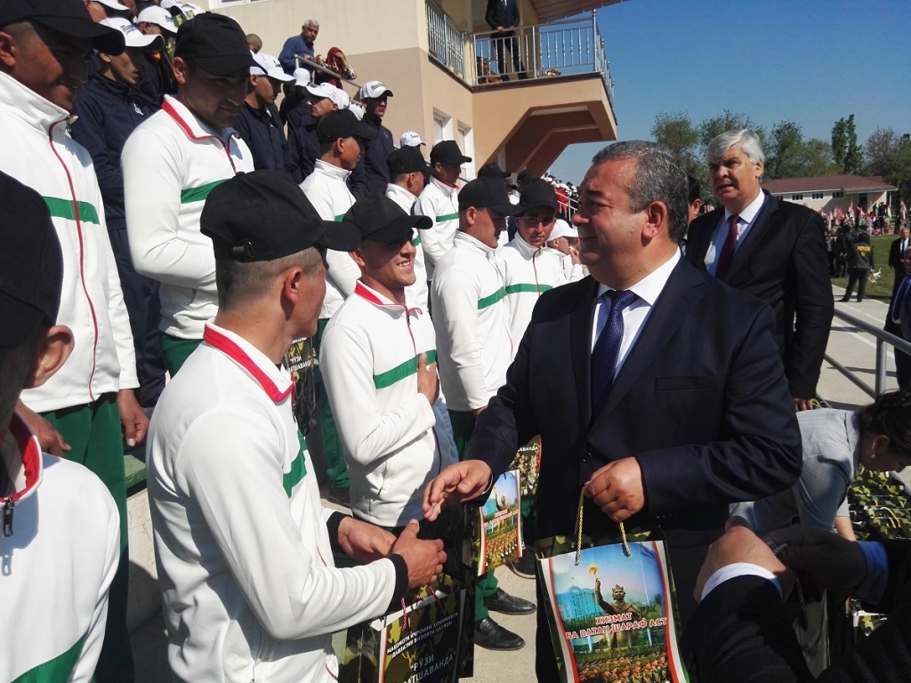 Курбон Хакимзода вручил 1000 новобранцам подарки и пожелал им достойную службу в рядах Вооруженных сил страны.